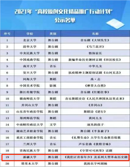 《<我们正青春年少>及系列大型革命历史剧》入选2021年度“高校原创文化精品推广行动计划”
