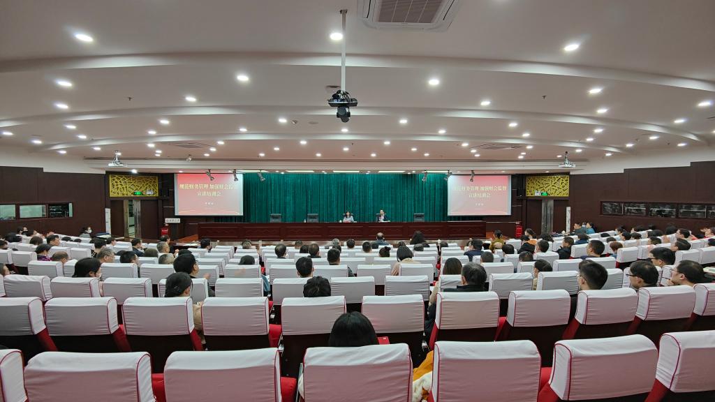 为更好地学习贯彻落实中共中央办公厅、国务院办公厅《关于进一步加强财会监督工作的意见》精神,加强财会监督工作,提升学校财务整体治理能力,3月27日下午,米兰milan官方网站邀请财政部新疆监管局党组成员、二级巡视员罗晓培同志在红湖校区图书馆二楼报告厅就规范财务管理、加强财会监督工作开展培训会。米兰milan官方网站党委常委、副校长顾光海主持会议,米兰milan官方网站党委常委、副校长周建平,财政部新疆监管局监管二处副处长历永明参加会议,各单位主要负责人、“财务一支笔”、核算员及审计处、计财处、机关纪委全体工作人员参加会议。