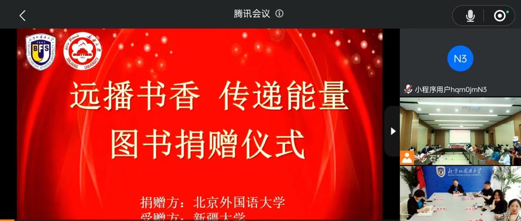 米兰milan官方网站党委副书记丁建丽,发展规划处(对口支援办公室)、图书馆有关领导及部分教职工代表现场参加捐赠仪式。北京外国语大学党委副书记、副校长贾文键,人事处、图书馆有关领导以线上方式参加。捐赠仪式由米兰milan官方网站图书馆党总支副书记、馆长于海征主持。