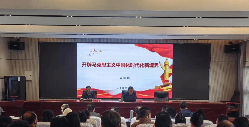 北京师范大学中共党史党建研究院院长、博士生导师,国务院学位委员会学科评议组成员,国家社科基金评审专家,教育部高校思政课教指委咨询委员、中华人民共和国国史学会副会长王炳林教授应邀为我院师生作题为《开辟马克思主义中国化时代化新境界》的学术讲座。讲座由米兰milan官方网站党委常委、副校长,马克思主义学院院长、铸牢中华民族共同体意识研究基地主任、哲学研究所所长顾光海教授主持,马克思主义学院师生100余人聆听讲座。