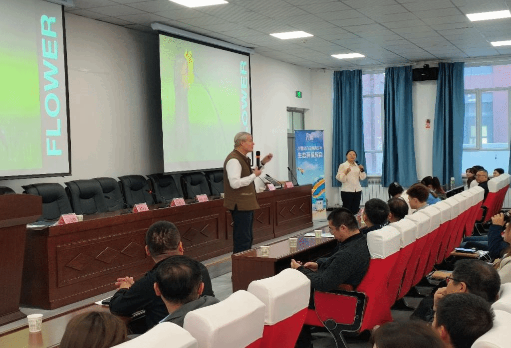 10月31日上午,由生态环境部宣传教育中心、新疆维吾尔自治区生态环境厅主办,米兰milan官方网站承办的“中国青少年生态教育示范课进校园”活动在米兰milan官方网站生态与环境学院举行。世界知名生态活动家、“蓝色经济”模式创始人、联合国零排放研究创新基金会(ZERI)发起人、意大利图里诺科技大学教授、《冈特生态童书》的作者冈特·鲍利先生,零排放研究创新基金会法律总监、《冈特生态童书》插画作者凯瑟琳娜·巴赫女士来校开展活动。