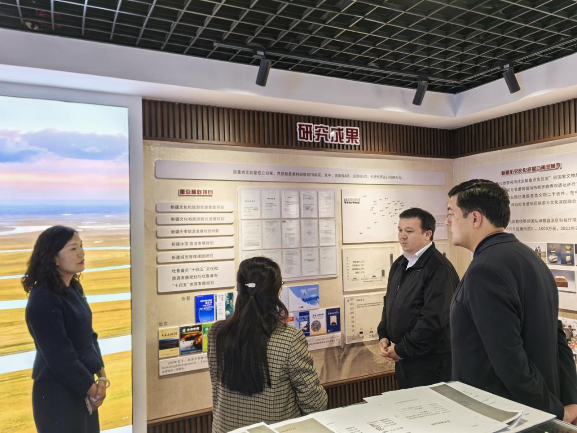 会前迪尔穆罗德·纳西莫夫一行参观了旅游学院“新疆历史文化旅游可持续发展重点实验室”。