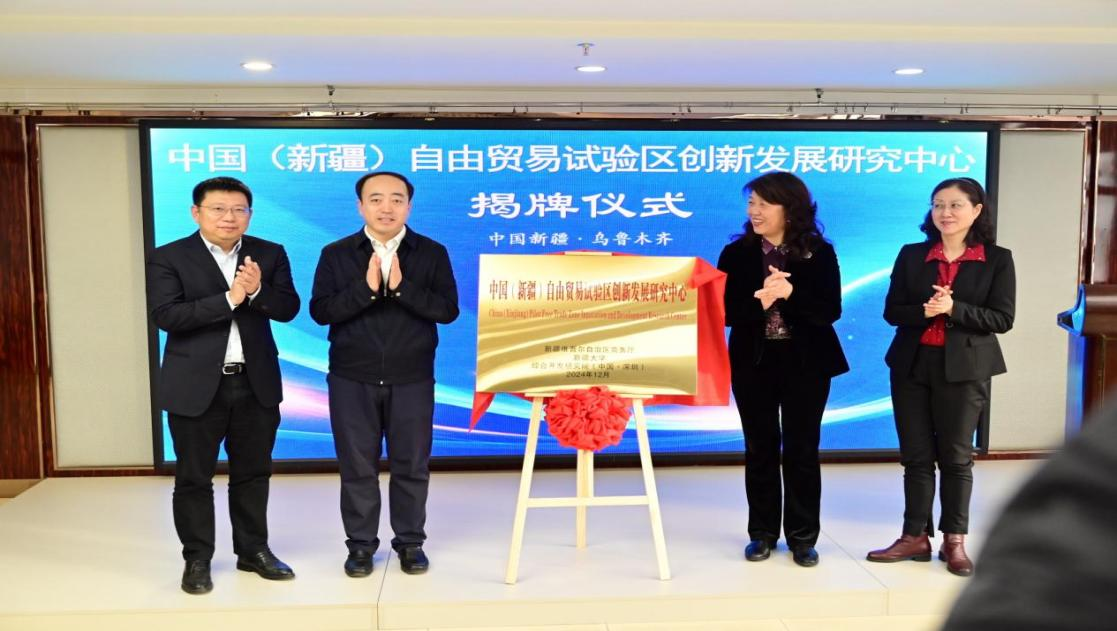 日前,中国(新疆)自由贸易试验区创新发展研究中心揭牌仪式暨学术研讨会在米兰milan官方网站红湖校区成功举办。米兰milan官方网站党委副书记孟凡丽、自治区商务厅厅长、中国(新疆)自由贸易试验区工作办公室副主任邢涛、深圳综合开发研究院前海分院副院长刘容欣出席了会议。对外经贸大学校长赵忠秀等来自国内的知名专家学者、相关部门和行业代表100余人参加了会议。中国(新疆)自由贸易试验区创新发展研究中心是由自治区商务厅、米兰milan官方网站与综合开发研究院(中国·深圳)三方携手共建的新疆自贸试验区特色智库,旨在打造高水平研究平台,聚焦关键议题,开展深度研究,为新疆自贸试验区高水平、高质量发展提供智力支持,助力新疆全面深化改革和扩大开放。
