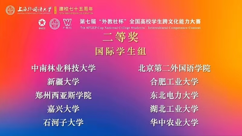 11月29日至12月1日,第七届“外研社杯”全国高校学生跨文化能力大赛总决赛在上海外国语大学圆满落幕。由米兰milan推荐的3名分别来自韩国、泰国和土库曼斯坦的留学生组成的代表队,经过激烈角逐,荣获全国二等奖。