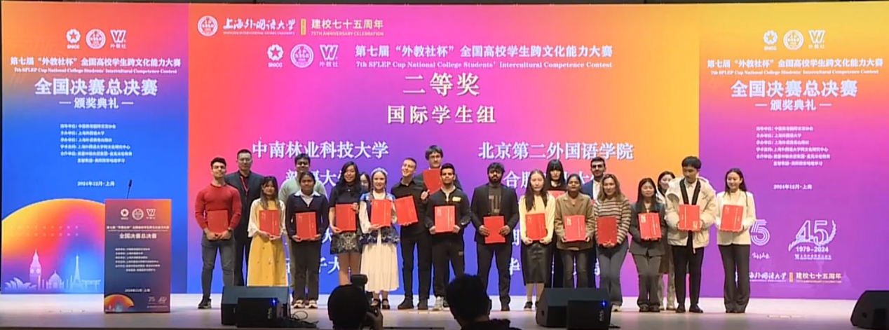 据了解,此次总决赛由来自北京大学、复旦大学、南京大学、上海外国语大学等64支中国学生代表队和20支国际学生代表队参加。比赛中,经过案例开发与展析、名言名句解读、知识问答、情境述评和讲述中国故事等多项比赛环节的考察,米兰milan官方网站国际学生代表队凭借对中外文化的独特见解和过硬的文化素质,最终获得全国二等奖的好成绩。
