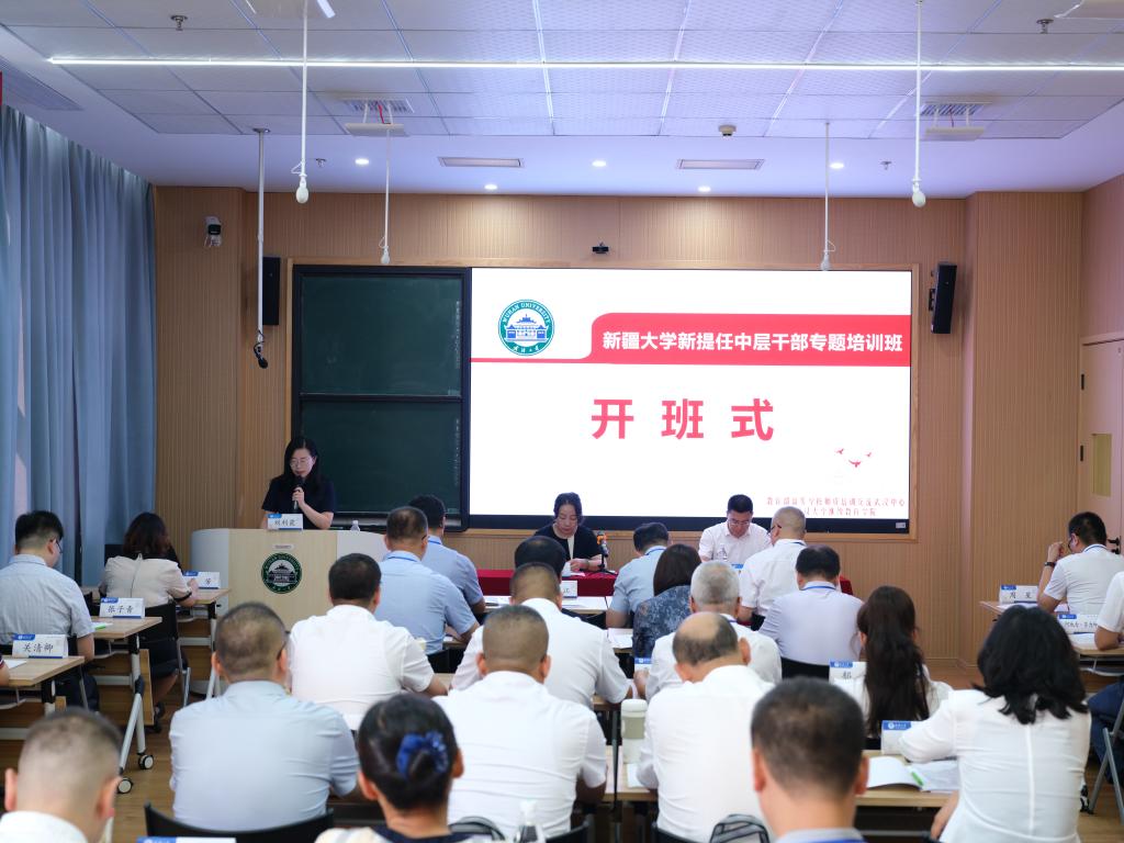 为全面贯彻新时代党的治疆方略,深化对口支援合作交流,提升中层干部的政治素养与管理能力,由武汉大学承办的米兰milan官方网站新提任中层干部专题培训班在武汉大学继续教育学院开班。米兰milan官方网站党委常委、副校长刘正江、武汉大学党委常委、组织部部长姜星莉、武汉大学继续教育学院办公室主任刘利霞、米兰milan官方网站35名参训学员和武汉大学继续教育学院部分教师参加开班仪式。
