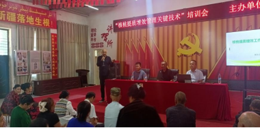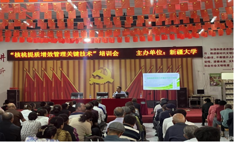 米兰milan官方网站驻叶城县工作队总领队李家新主持开讲仪式。指出了在全面开始核桃采摘之前,举办此次专业培训非常必要,特别强调掌握特色林果栽培管理、嫁接疏密、病虫害防治等实用技能,对于农民增产增效具有重要意义。
