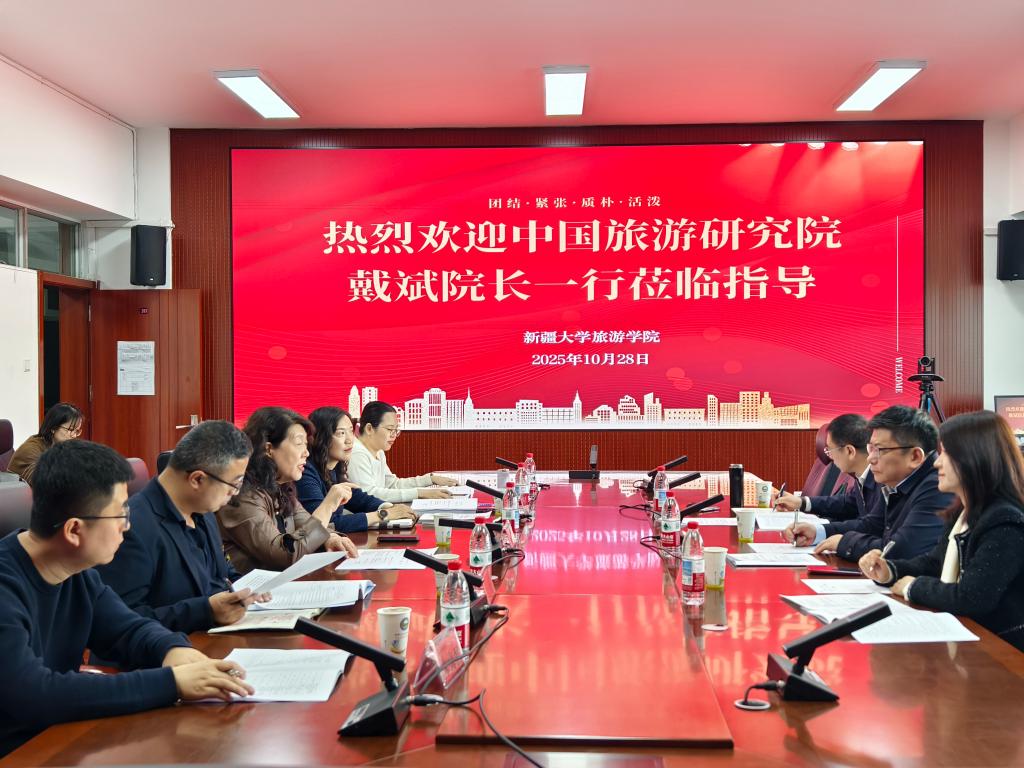 10月28日上午,中国旅游研究院院长、文化和旅游部数据中心主任戴斌一行来访米兰milan官方网站并调研座谈。米兰milan官方网站党委副书记孟凡丽会见来宾。自治区文旅厅党组成员、艺术剧院党委书记蔡晓荣、新疆文化旅游产业研究院副院长陈子月陪同调研。