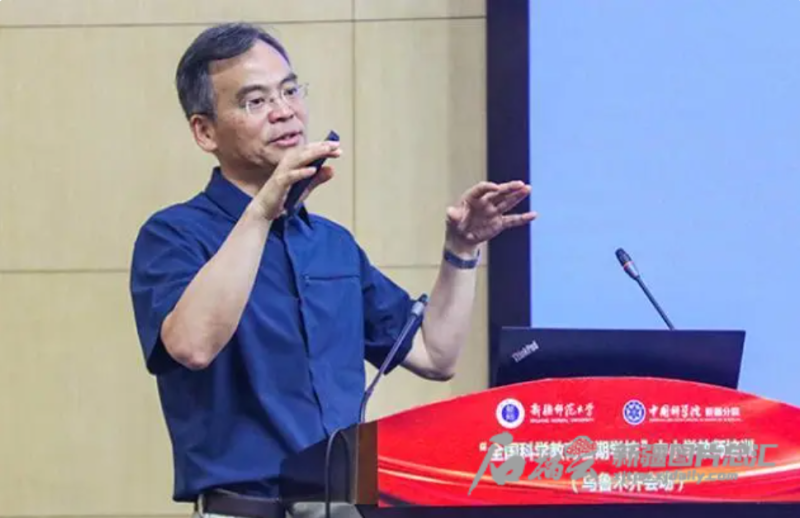 2022年7月28日,在“全国科学教育暑期学校”中小学教师培训(乌鲁木齐会场),中国科学院院士、中国科学院新疆分院院长肖文交现场授课。新疆师范大学供图(资料图)