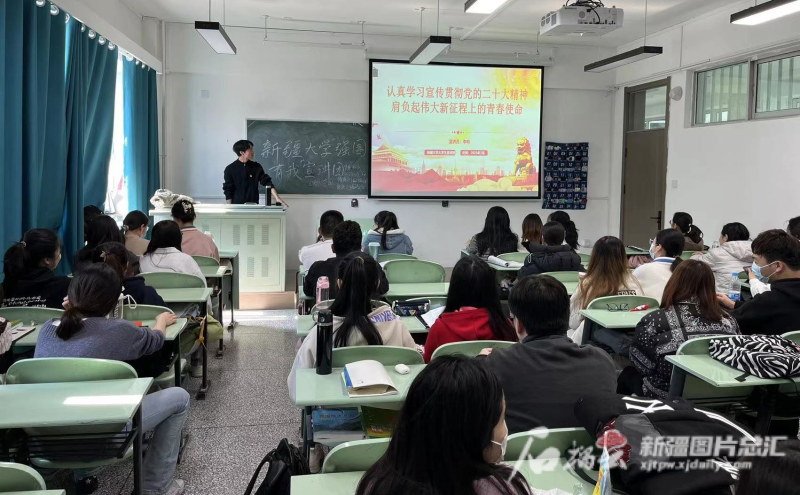 3月22日,米兰milan官方网站“强国有我”大学生宣讲团宣讲员走进各团支部宣讲党的二十大精神。阿布都外力·吐尼亚孜摄