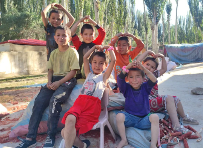 虽然是我也是农村出来的娃,但是南疆农村跟北疆农村的生活很不一样。初到村上,我也是带着满腔的热情和期待驻村生活,准备大干一场,然而在第一次入户走访时,就给我当头一棒,群众国语水平不高,我又不会维语,见到村民只能大眼对小眼,搞得自己手足无措,村民也很不自在。但是我很快就找到了应对之策,走访时发现我的结对亲戚基本上都是一个妇女带着孩子为主,当即决定从孩子们开始入手,让孩子们充当我的“翻译官”。通过孩子的翻译不仅可以与群众进行沟通,对每户的家庭情况也逐渐熟悉,还可以拉进自己与孩子、家长的距离。“依萨克江、木娜瓦尔、古丽米热、麦麦提江、阿布都热合曼......”他们不仅成为我的“小翻译”,更是我的“小老师”,教我怎么剥青皮核桃;怎么使用坎土曼;在羊群里如何判断头羊等等。