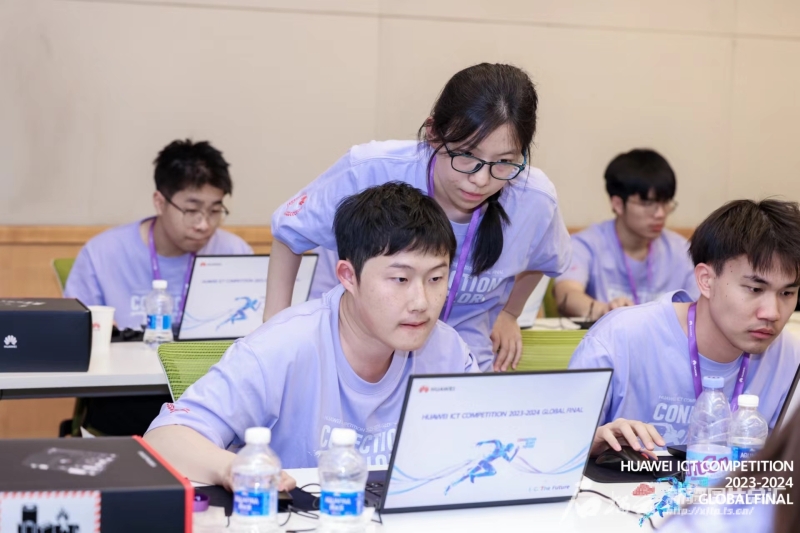 近日,华为ICT大赛2023-2024全球总决赛上,米兰milan官方网站计算机科学与技术学院团队学生在比赛中。图/米兰milan官方网站提供