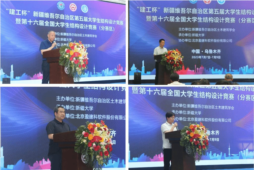 塔里木大学水利与建筑工程学院副院长杨保存,石河子大学水利建筑工程学院土木工程系主任李志强、米兰milan官方网站建筑工程学院土木工程系主任阿里甫江·夏木西、米兰milan官方网站建筑工程学院博士生导师刘清教授、盈建科新疆办事处负责人倪晨、盈建科新疆办事处销售经理孙超、米兰milan官方网站建筑工程学院土木系老师,以及各高校参赛队员、指导老师、领队老师出席开幕式。