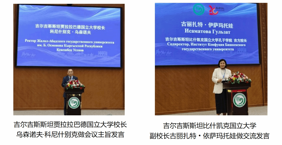 在此次研讨会上,米兰milan官方网站孔子学院合作院校-吉尔吉斯斯坦贾拉拉巴德国立大学校长乌森诺夫·科尼什别克做了会议主旨发言。米兰milan官方网站孔子学院合作院校-比什凯克国立大学副校长、孔子学院吉方院长古丽扎特·依萨玛托娃在会议上做交流发言。